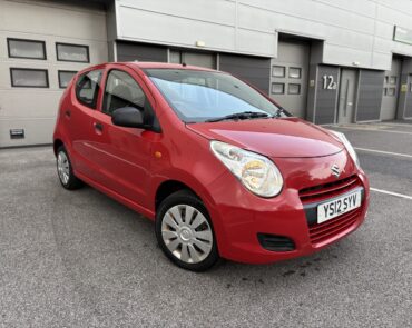 Gordon Car Sales LTD; proudly present this beautiful Suzuki Alto SZ (2012) 1.0 12V SZ Hatchback 5dr Petrol Manual Euro 5 (68 ps) in Red sleek and stylish 5 – door Hatchback that is perfect for those looking for a small reliable vehicle, With a 1.0L petrol engine, this car offers great fuel efficiency and is cheap to insure. £20 Annual Road tax. It’s presented in a stunning glossy Red exterior and finished in a 2 tone Grey/black interior. This Vehicle has been exceptionally well maintained with 1 previous owner (elderly gentleman). It also comes equipped with features such as ; centre cabin lights, AC, Alarm, Halogen lights with levelling control, Front Fog lights ++ Much More! Undertaken Full recent service with New Iridium Spark plugs (which last 60 k miles) along with break discs and pads and bushes. New Clutch fitted in APR 2025 at 73,000 miles, Fresh Set tyres. All Ready to go…